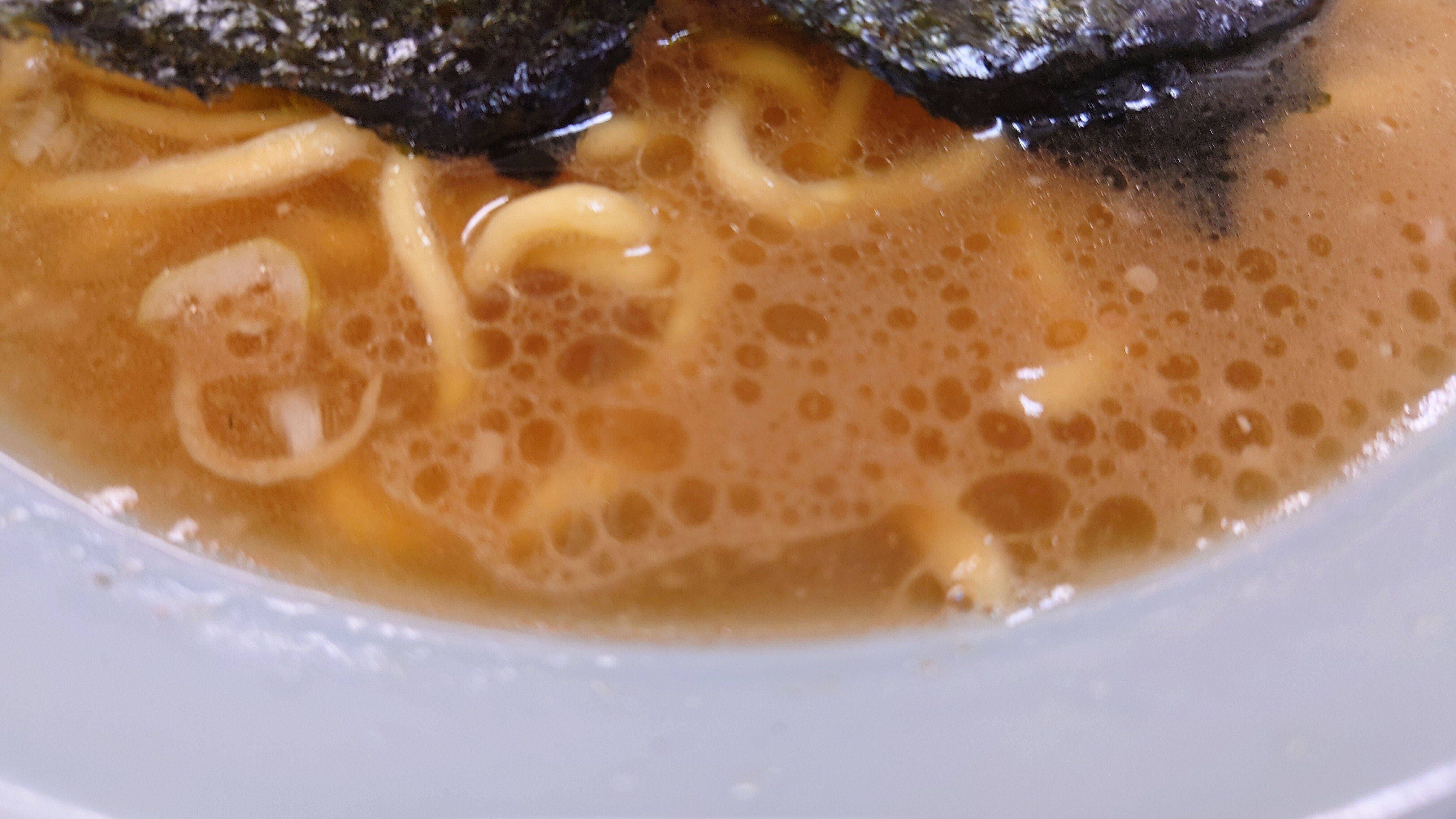 そして、そのコール通り、麺は割としっかり固め、ポキポキっとしたウェービーな中太麺。そこと、ビジュアルからすると、スープが割とあっさりしていますね。良い表現をすればあっさり、悪い表現をすればパンチが弱い感じ。なんだろう。味の好みとかを含めて家系チックですが、味わいは割とラーショ系に近いですね。意外。